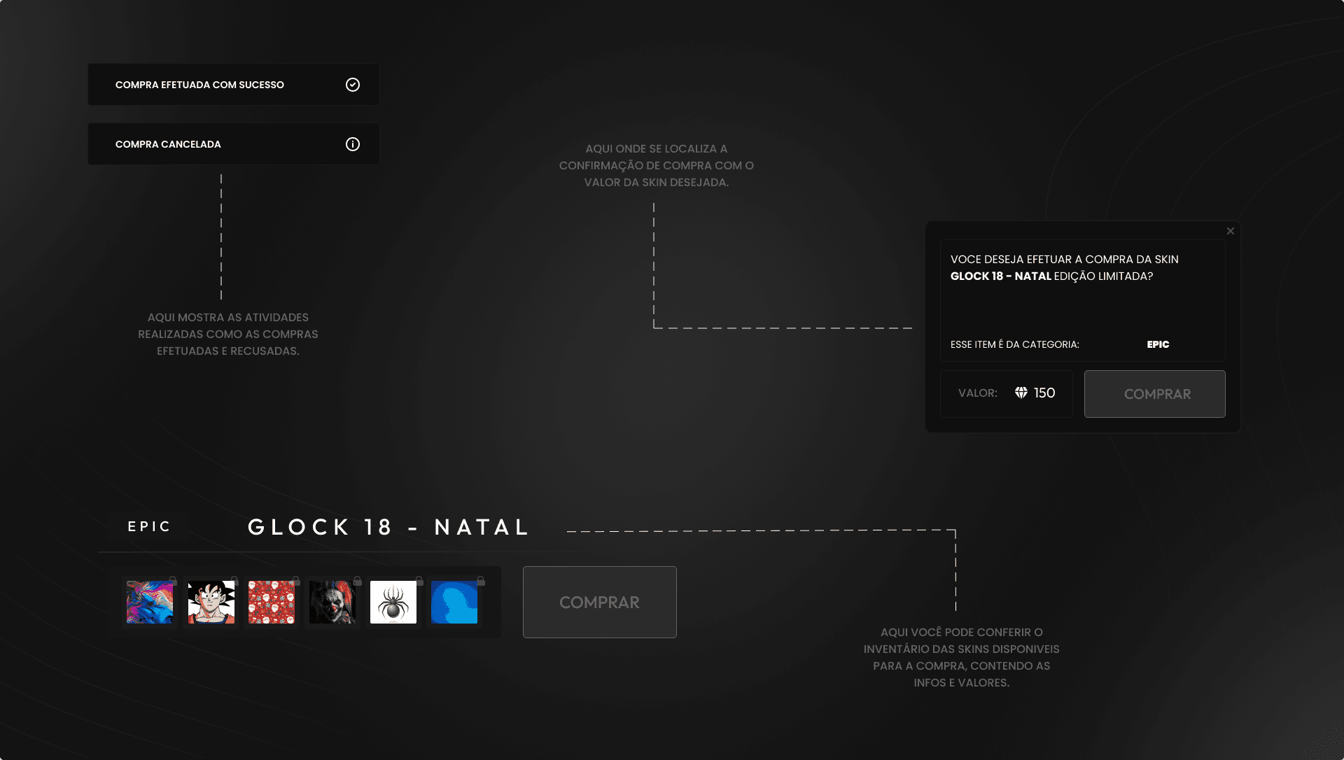 Developed a gem-based skin shop with inventory integration and visual previews.